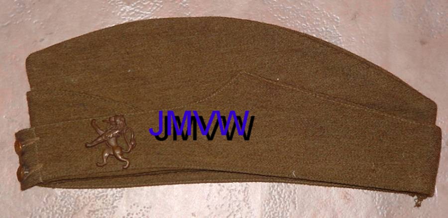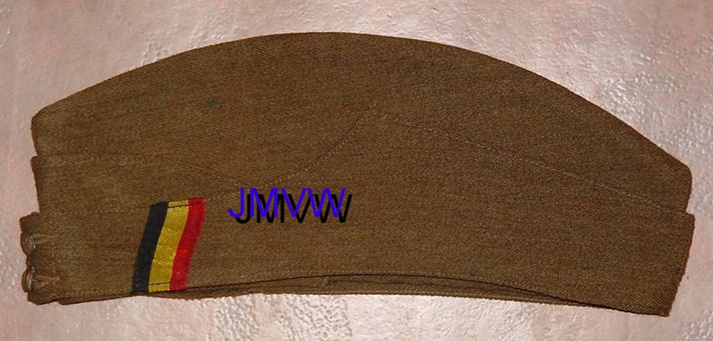Two privates wearing the field cap with the national colours and the Belgian lion. |