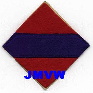 It consists of a dark blue stripe across the centre of a scarlet diamond.