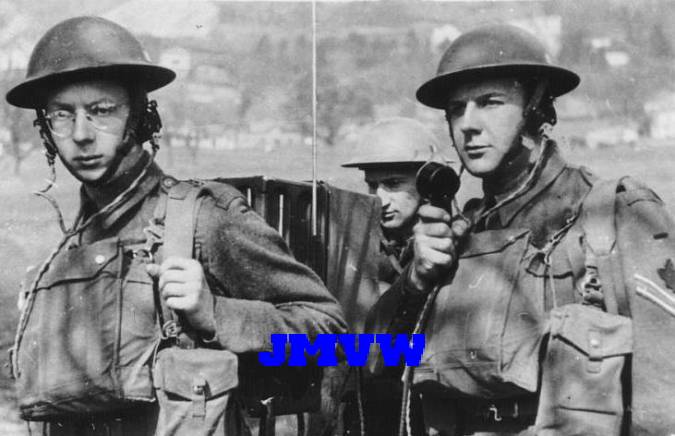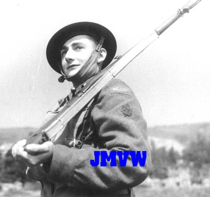 1941, La Joliette, Canada. The man in the upper right corner wears the "BELGIUM" arm title. |