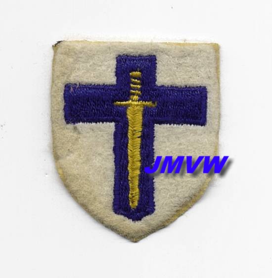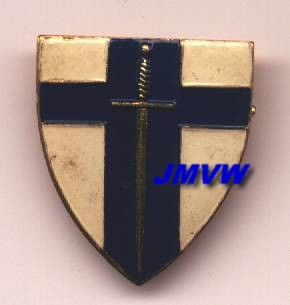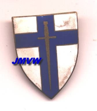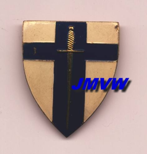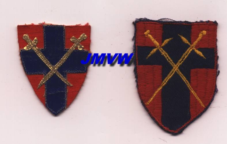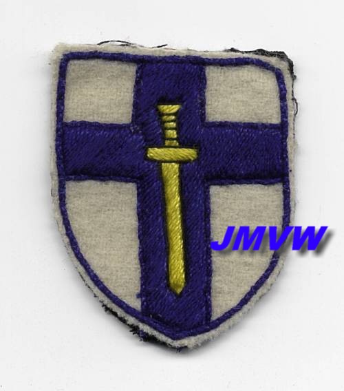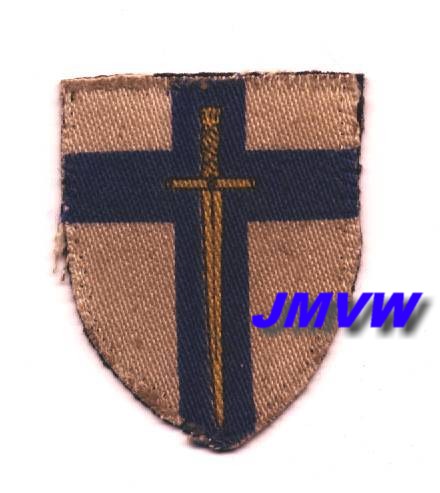 DETACHMENT HQ 2ND ARMY A crusader sword in gold on a dddark blue cross on a white shield. |