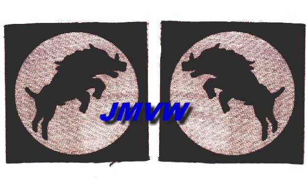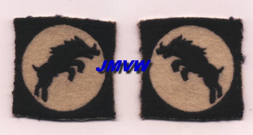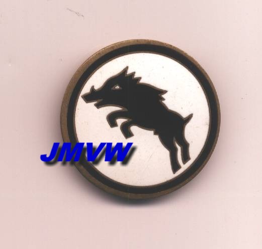 ARMY CORPS A black charging boar in a white circle on a square black background. |