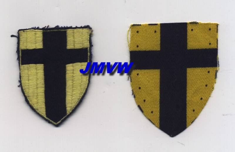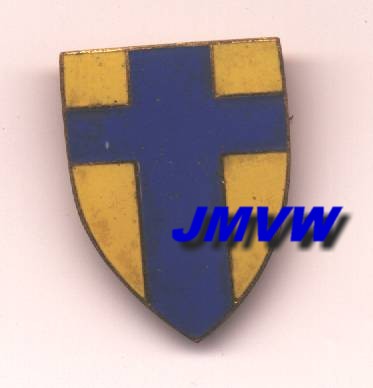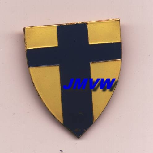 the HQ of the the Lines of Communication 21st Army Group. After the cessation of hostilities in Europe it became the HQ British Troops in the Low Countries. A dark blue cross on a yellow shield. |