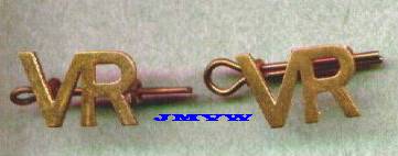 The first is the "VR" badge, abreviation for Volunteer Reserve.