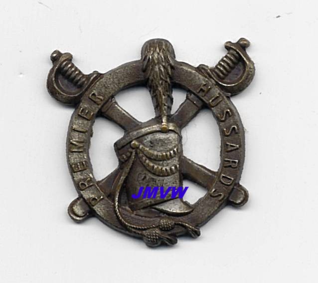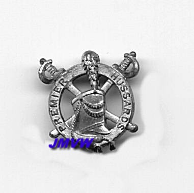 A "Shako" in front of two crossed sabres, the whole in a large circle with the inscription "Premier Hussards".