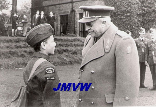 College, Buxton, United Kingdom, May 25 1942. Belgian Cadet with Lieutenant General VAN STRYDONCK DE BURKEL, Inspector General of the Belgian Army. |