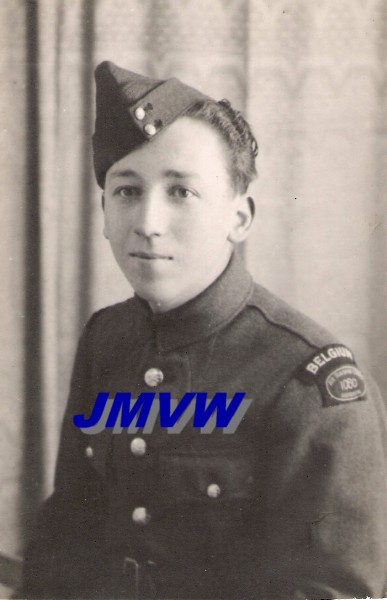 | 1944, Belgian cadet wearing the curved "BELGIUM" arm title. |