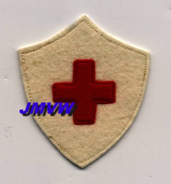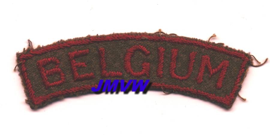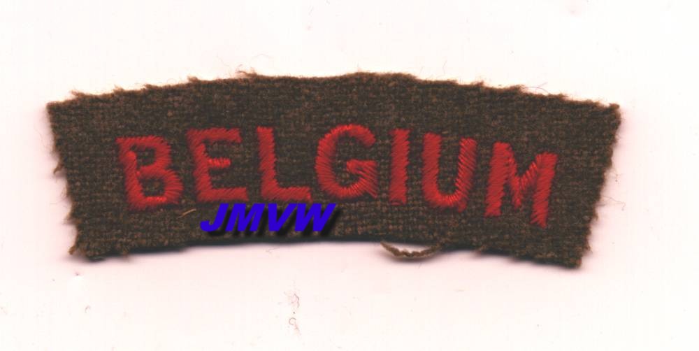 The Army nurses wore the khaki curved arm title with "BELGIUM" in dark red capital letters.