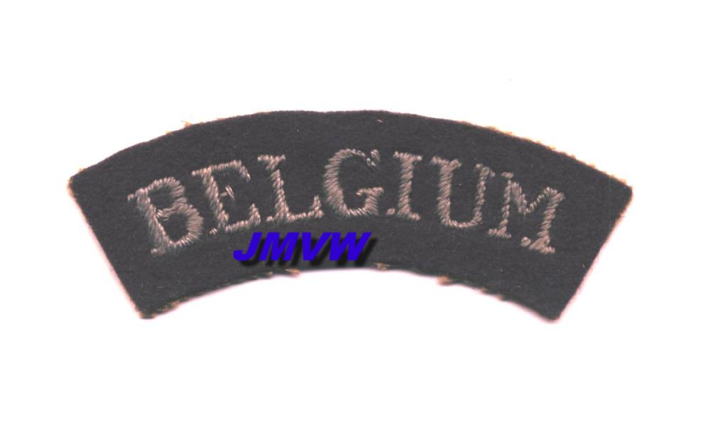The WAAF wore a RAF blue curved arm title with "BELGIUM" in light blue capital letters.