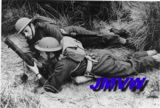 Tenby, UK, 1941. Belgian soldiers training with small mortar. |