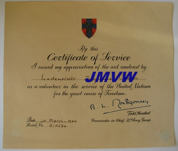 | Certificate of Service 21st Army Group |