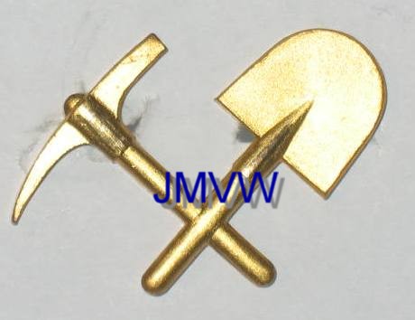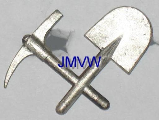 A crossed spade and pickaxe were worn on the cap and on the collars.