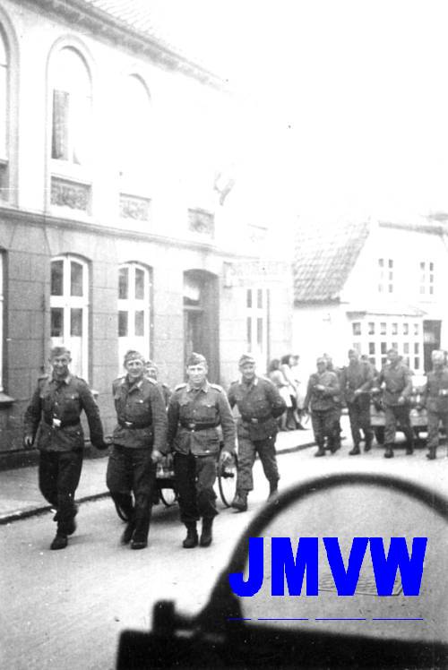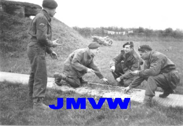 | April 1945, advancing into The Netherlands towards Germany. | May 1945, Belgian SAS in Tönder, Denmark. |