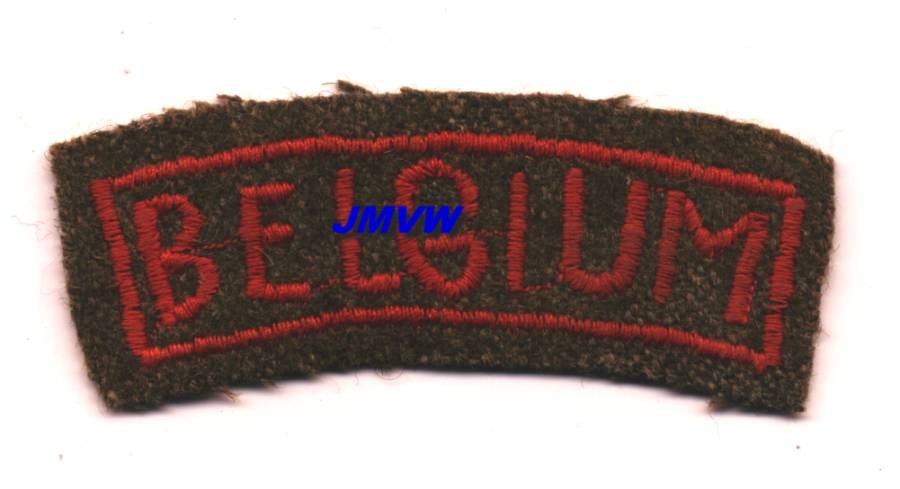 On the left upper sleeve the curved "BELGIUM" arm title was worn, red lettering on a khaki background.
